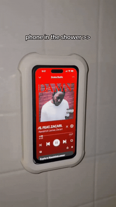 Yes. It has IPX7 waterproof protection, which means it resists strong splashes, steam, and direct water (like from the shower or faucet). Your phone stays fully sealed.